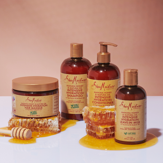 Manuka Honey draws in and seals moisture plus boosts shine. Yoghurt Extracts add nourishing moisture and strengthen hair. Mafura Oil softens and promotes healthy-looking hair.