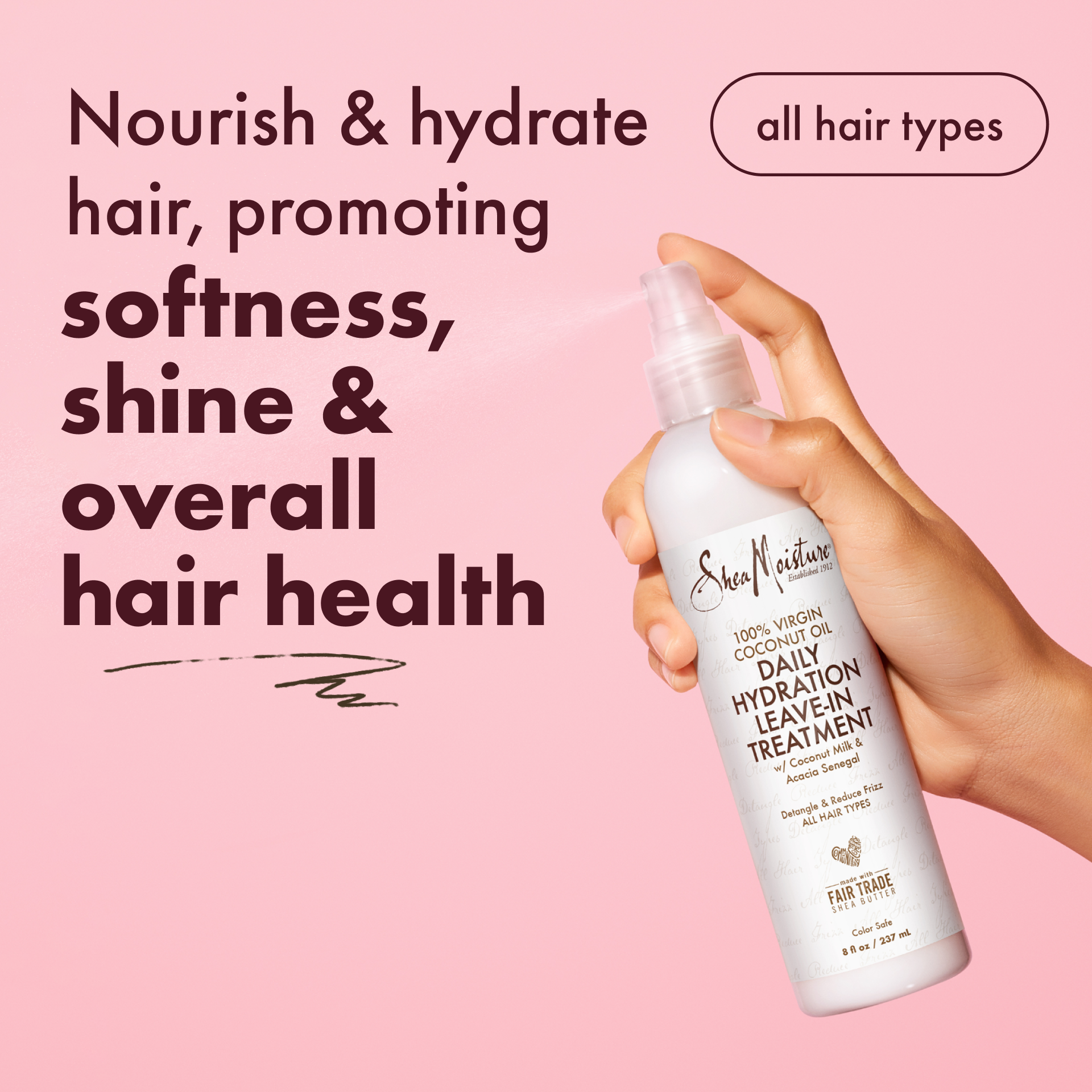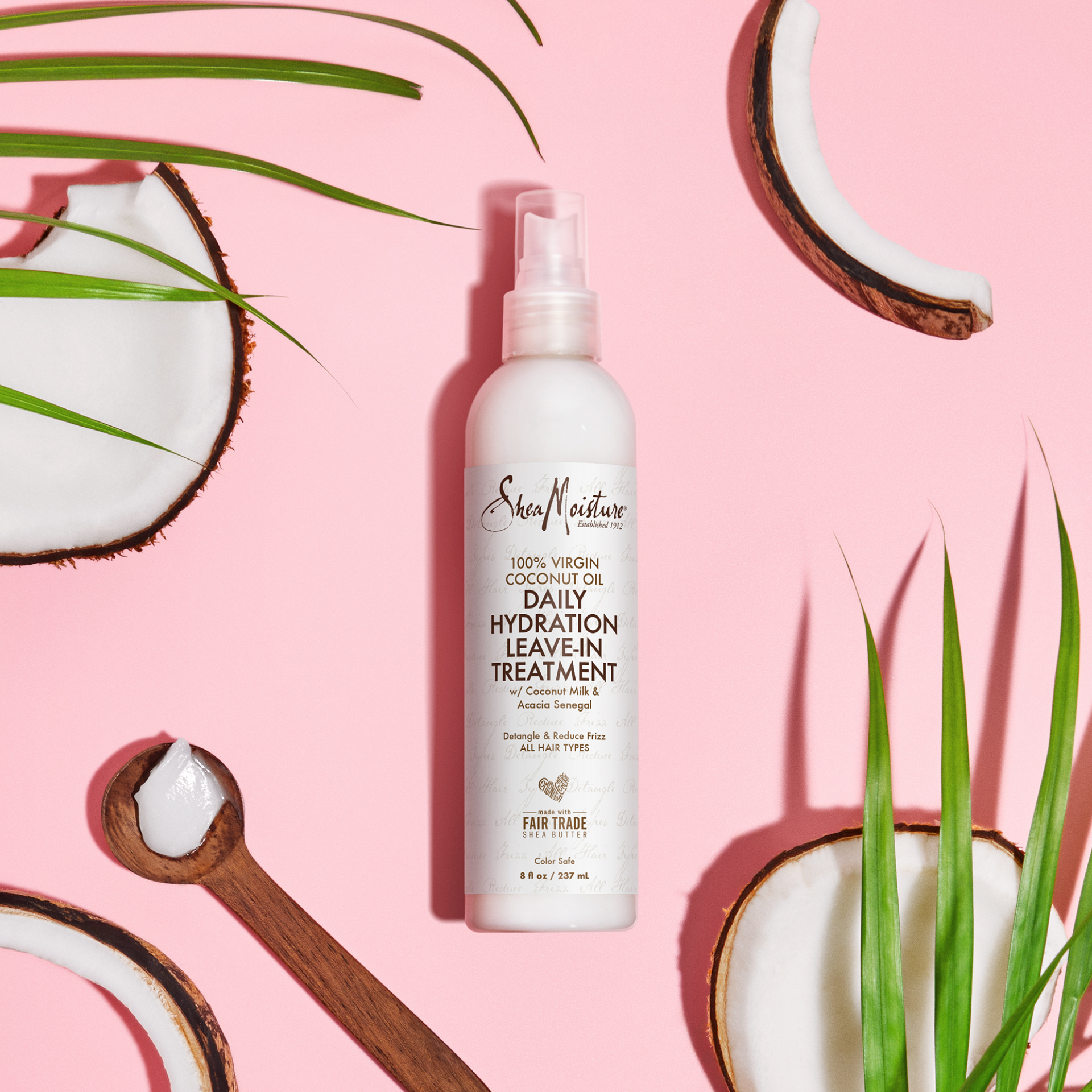Soften hair and improve styling manageability with this lightweight, milk leave-in treatment. 100% Extra Virgin Coconut and Shea Oils, Coconut Milk and Acacia Senegal combine in this restorative formula that re-hydrates hair, detangles and acts as a barrier against heat while reducing frizz. Leaves hair wrapped in a light coastal coconut breeze.