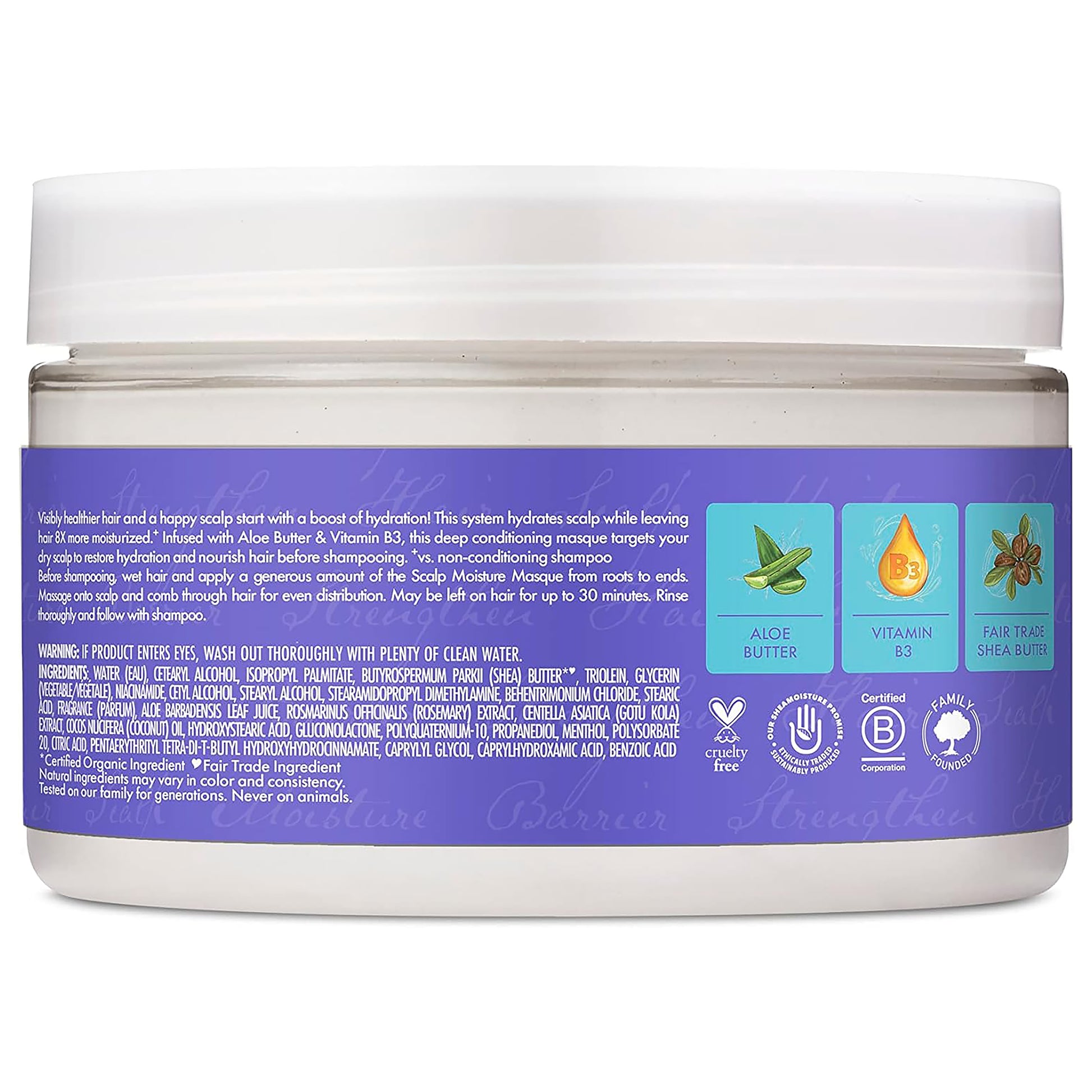 Start with a boost of hydration! SheaMoisture Scalp Moisture Pre-Wash Masque, infused with Aloe Butter and Vitamin B3, provides extra nourishment to help restore hydration to your dry scalp and hair. Our Aloe Butter hair care system, formulated with Fair Trade Shea Butter, leaves hair 8x more moisturized and 4x stronger. This deep conditioning masque targets your dry scalp to restore hydration and nourish hair before shampooing. When used together, with our shampoo and conditioner, this Shea Moisture hair masque moisturizes and strengthens for less breakage and healthy-looking hair.