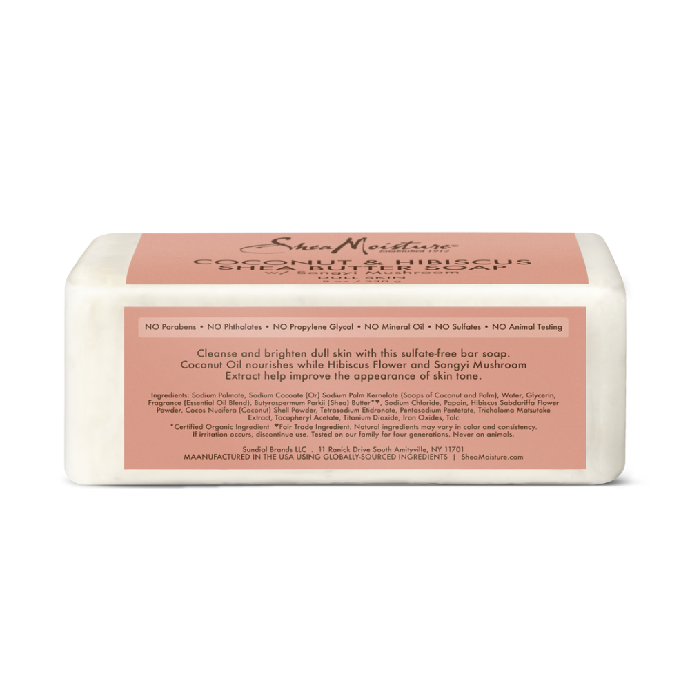Sodium Palmate, Sodium Cocoate (Or) Sodium Palm Kernelate (Soaps of Coconut and Palm), Water, Glycerin, Fragrance (Essential Oil Blend), Butyrospermum Parkii (Shea) Butter* Sodium Palmate, Sodium Cocoate (Or) Sodium Palm Kernelate (Soaps of Coconut and Palm), Water, Glycerin, Fragrance (Essential Oil Blend), Butyrospermum Parkii (Shea) Butter* , Sodium Chloride, Papain, Hibiscus Sabdariffa Flower Powder, Cocos Nucifera (Coconut) Shell Powder, Tetrasodium Etidronate, Pentasodium Pentetate, Tricholoma Matsutake Extract, Tocopheryl Acetate, Titanium Dioxide, Iron Oxides, Talc *Certified Organic Ingredient Fair Trade IngredientFair Trade Ingredient